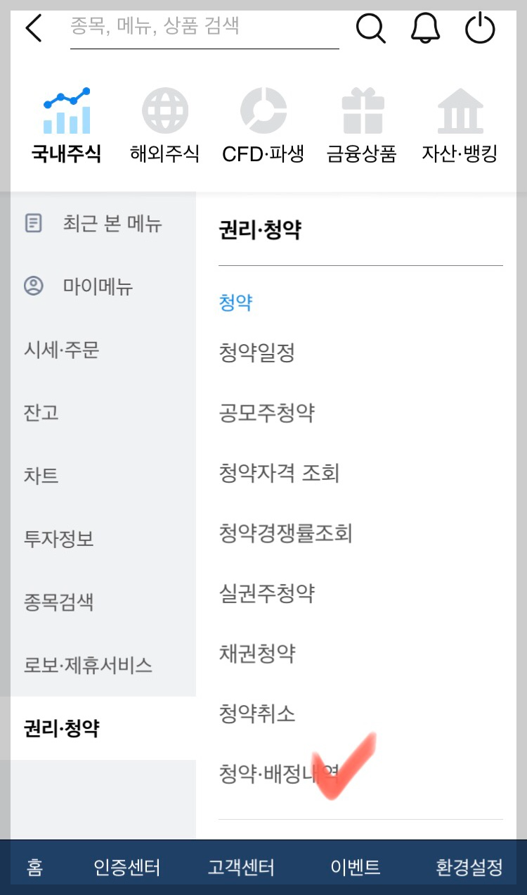 배정주식수 확인할려고 하니 확인방법이 약간 번거롭네 ㅜ