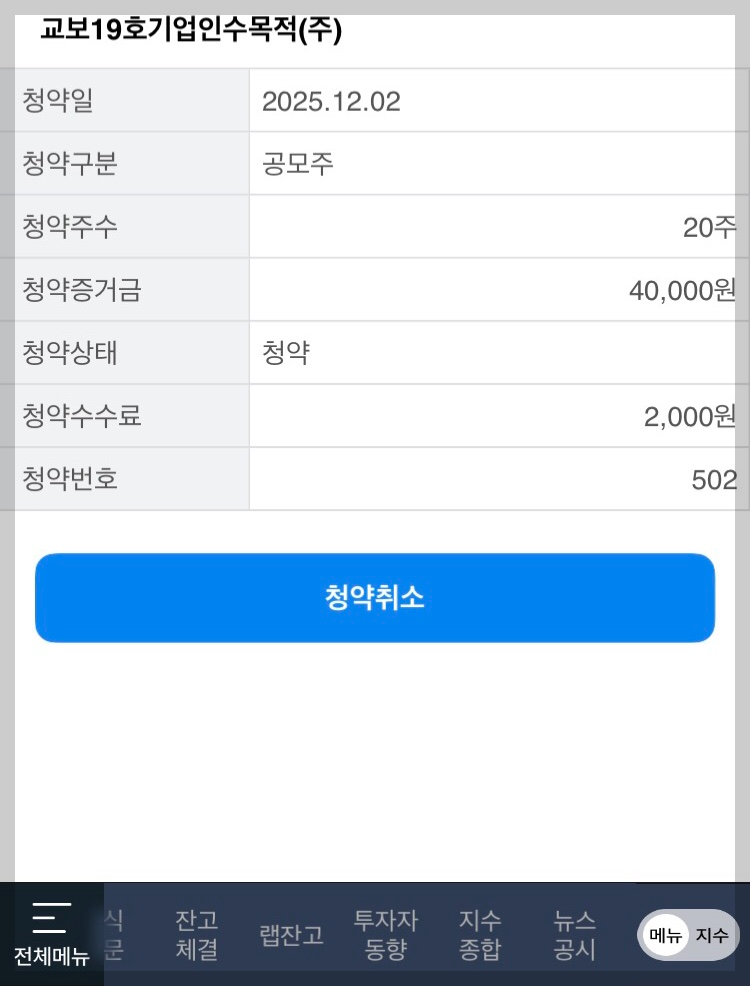 그래서 교보증권 계좌를 새로 개설하고 스팩을 청약해 보았다.