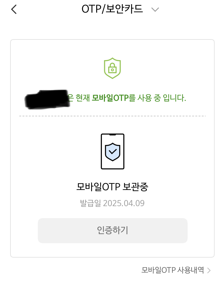 모바일 otp발급 받았더니