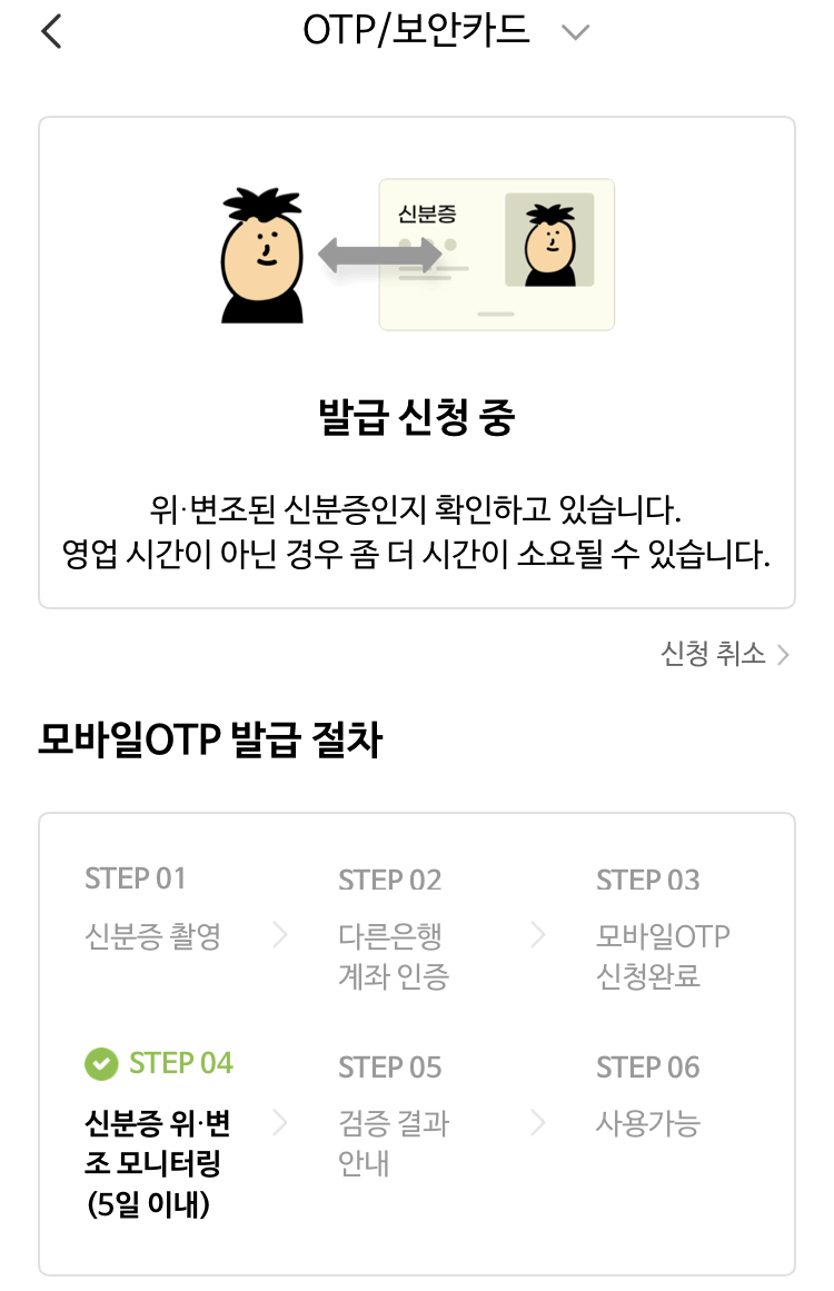모바일 otp발급 받았더니