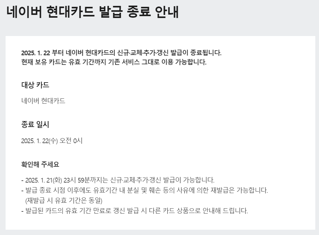 현대카드 발급 종료!
