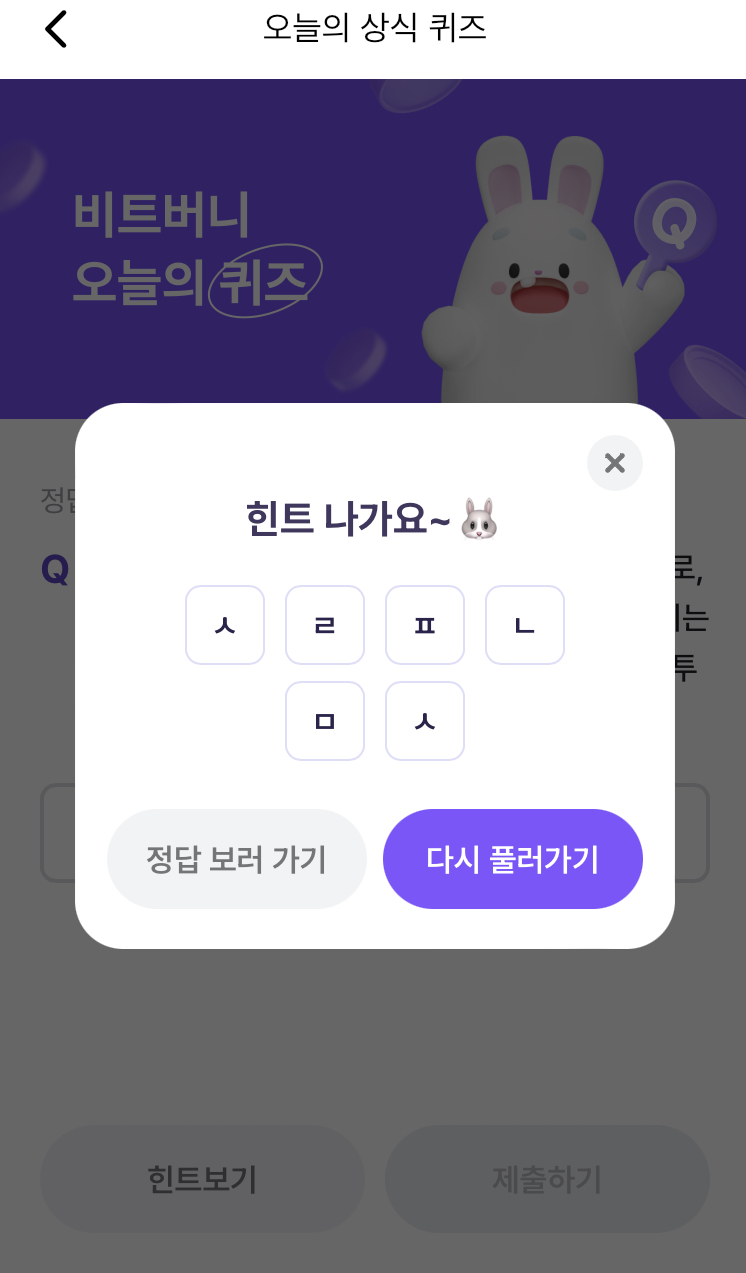 * 비트버니 퀴즈는 오늘의 퀴즈와 코인이 쌓이는 퀴즈가 있어요!!