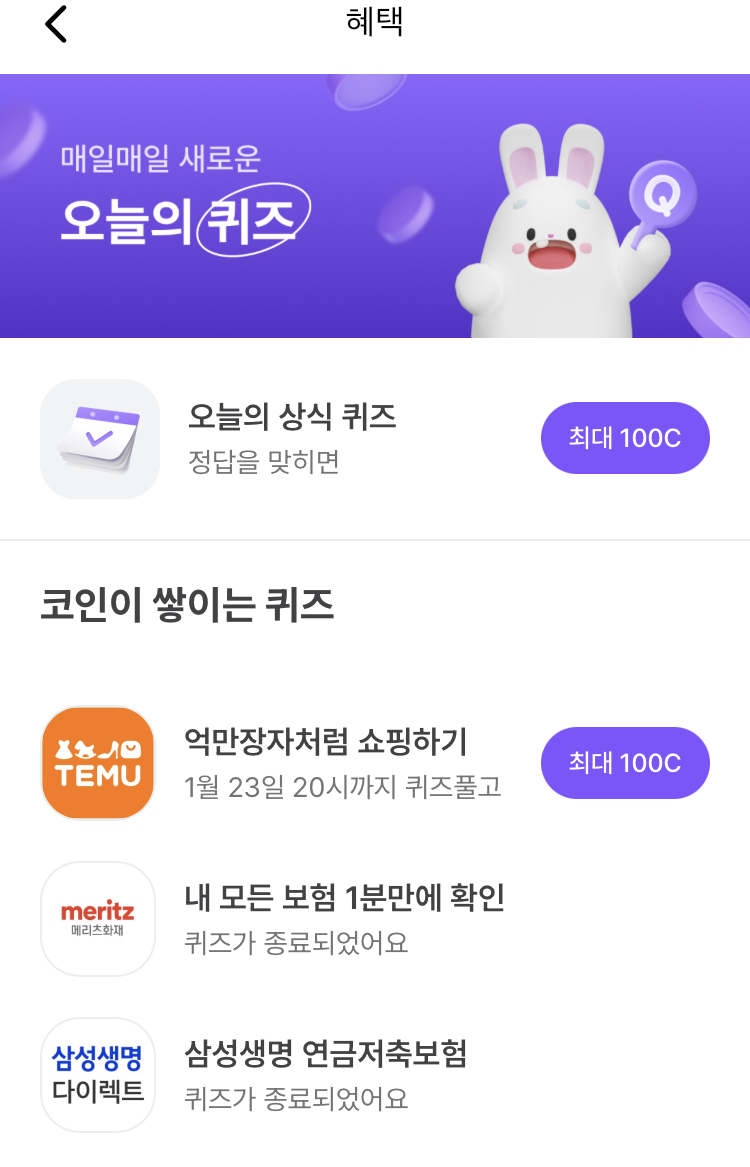 / 코인이 쌓이는 퀴즈도 풀어봐요~