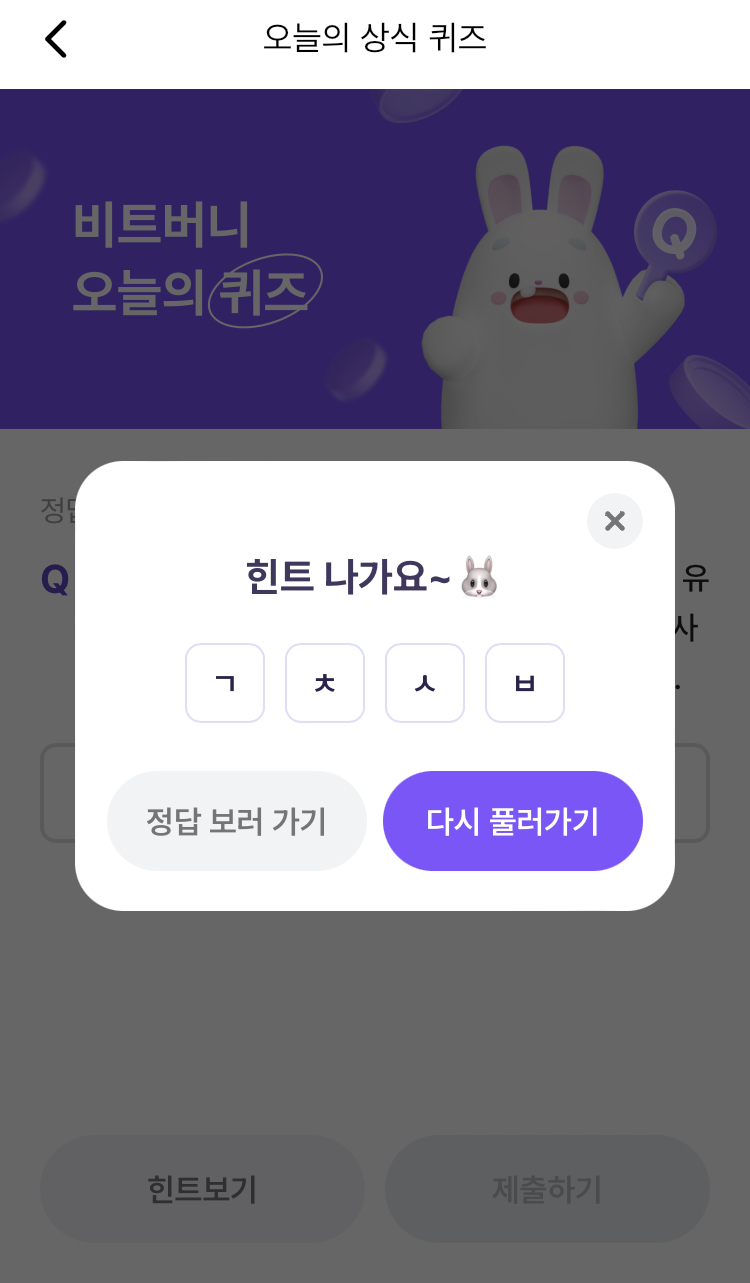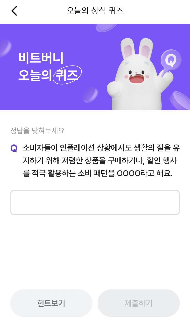 * 비트버니 퀴즈는 오늘의 퀴즈와 코인이 쌓이는 퀴즈가 있어요!!
