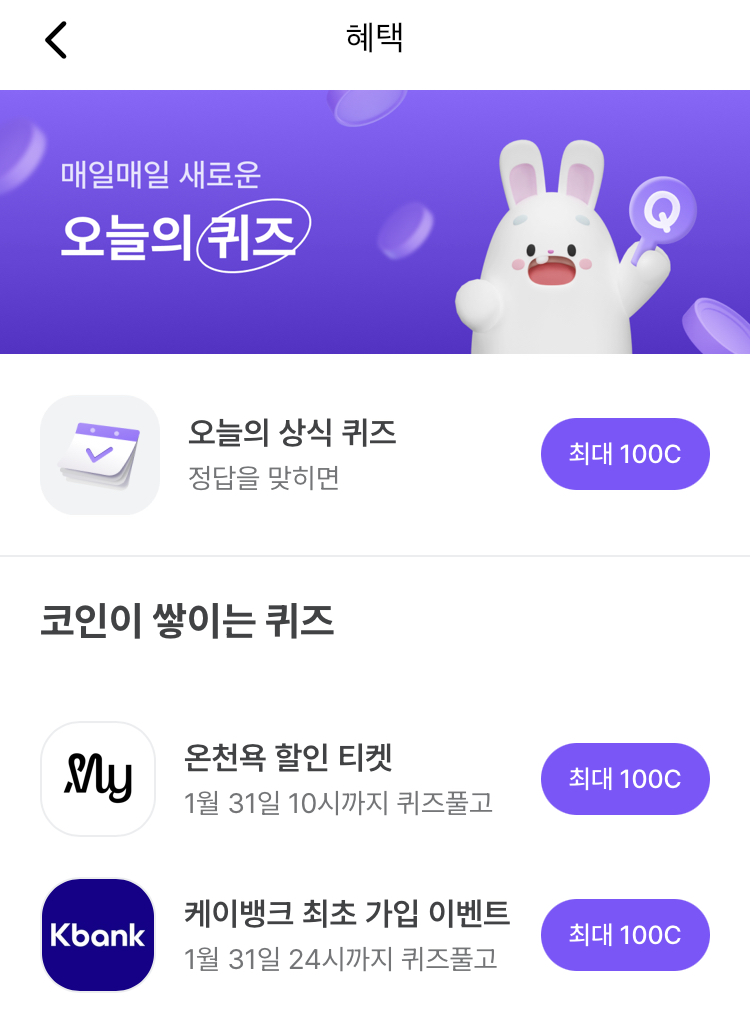 / 코인이 쌓이는 퀴즈도 풀어봐요~