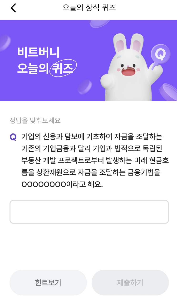 * 비트버니 퀴즈는 오늘의 퀴즈와 코인이 쌓이는 퀴즈가 있어요!!
