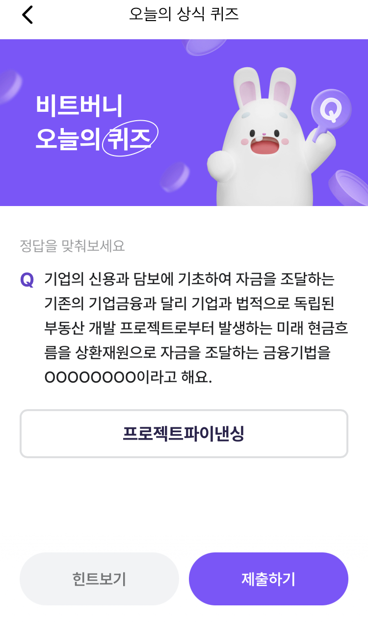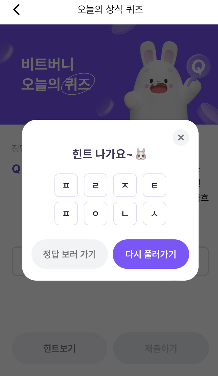 * 비트버니 퀴즈는 오늘의 퀴즈와 코인이 쌓이는 퀴즈가 있어요!!
