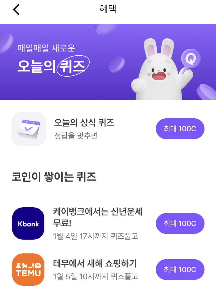 / 코인이 쌓이는 퀴즈도 풀어봐요~
