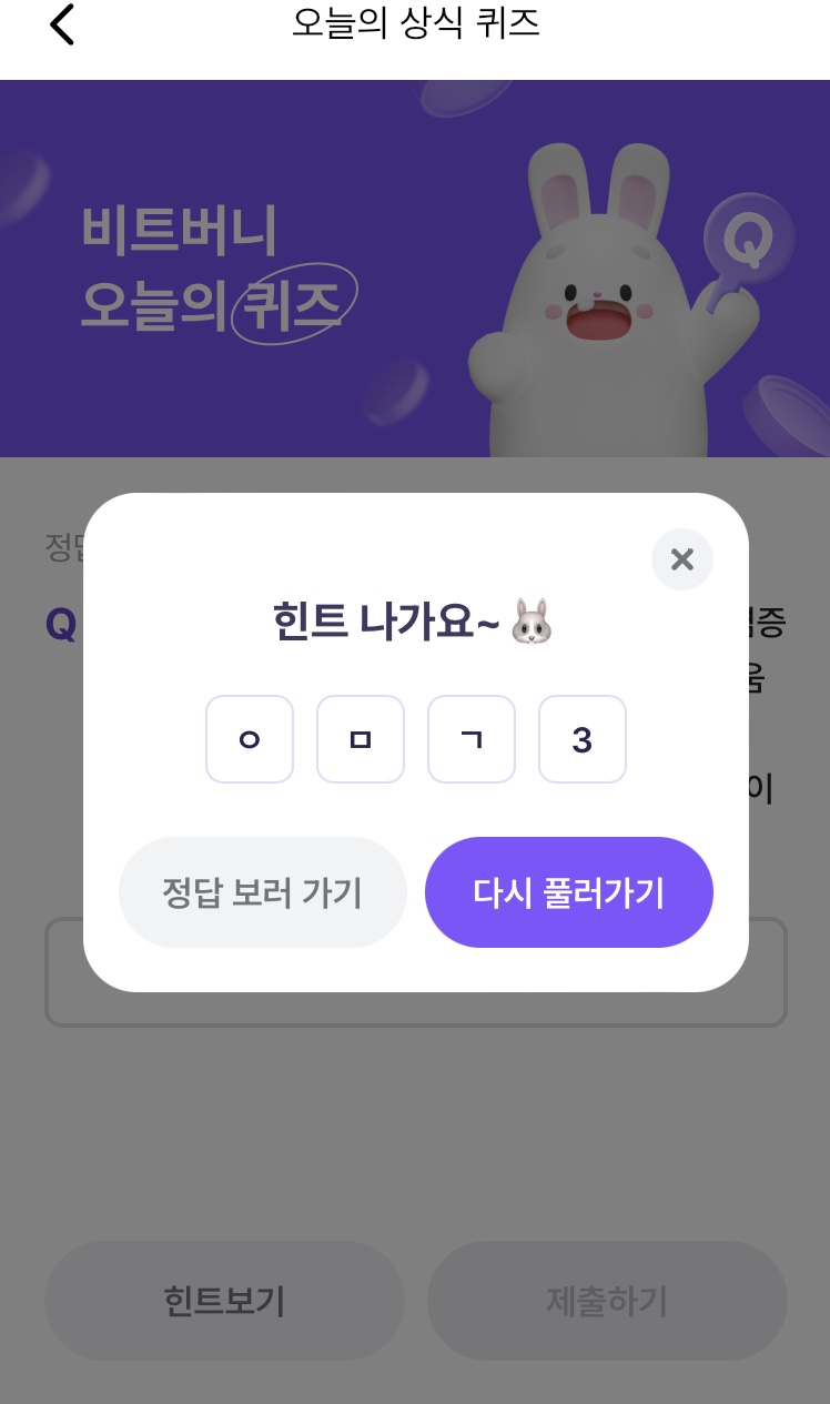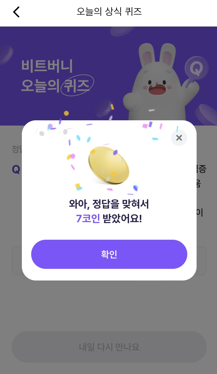 * 비트버니 퀴즈는 오늘의 퀴즈와 코인이 쌓이는 퀴즈가 있어요!!