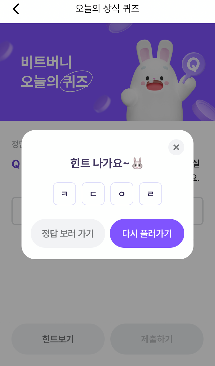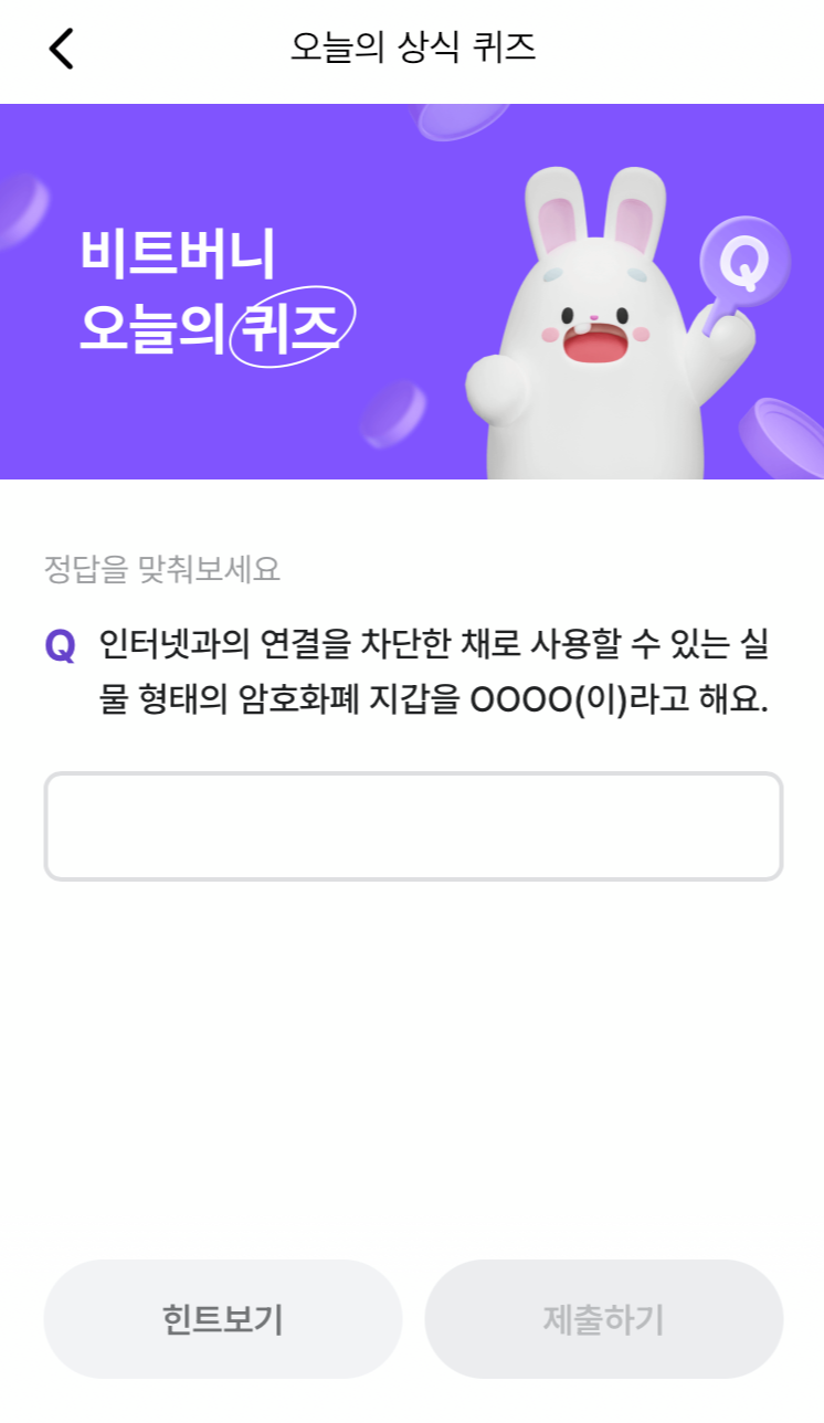 * 비트버니 퀴즈는 오늘의 퀴즈와 코인이 쌓이는 퀴즈가 있어요!!