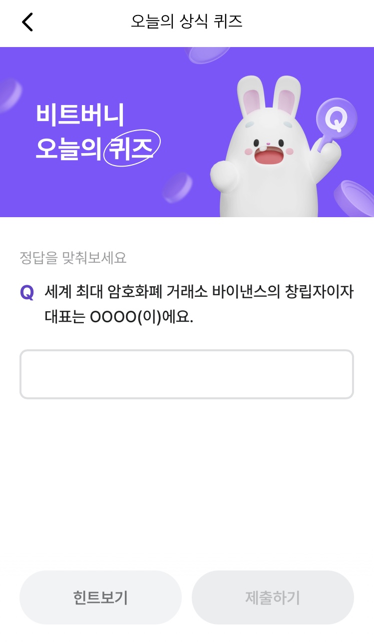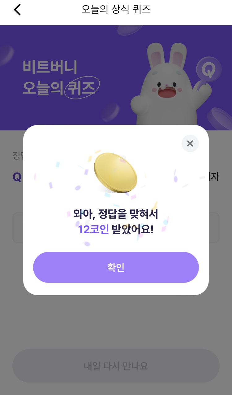* 비트버니 퀴즈는 오늘의 퀴즈와 코인이 쌓이는 퀴즈가 있어요!!