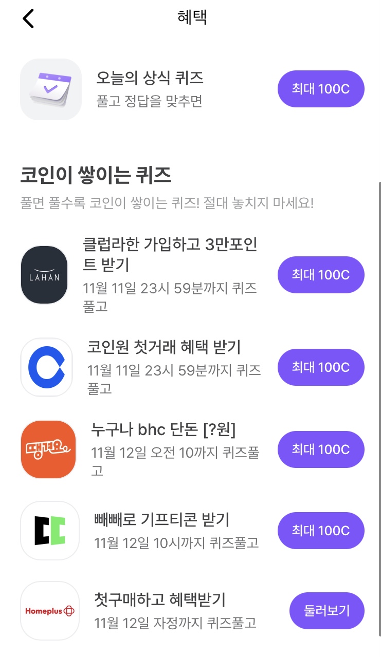 / 코인이 쌓이는 퀴즈도 풀어봐요~
