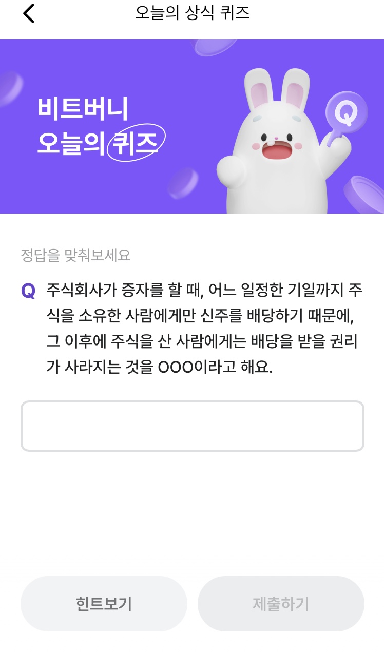 * 비트버니 퀴즈는 오늘의 퀴즈와 코인이 쌓이는 퀴즈가 있어요!!