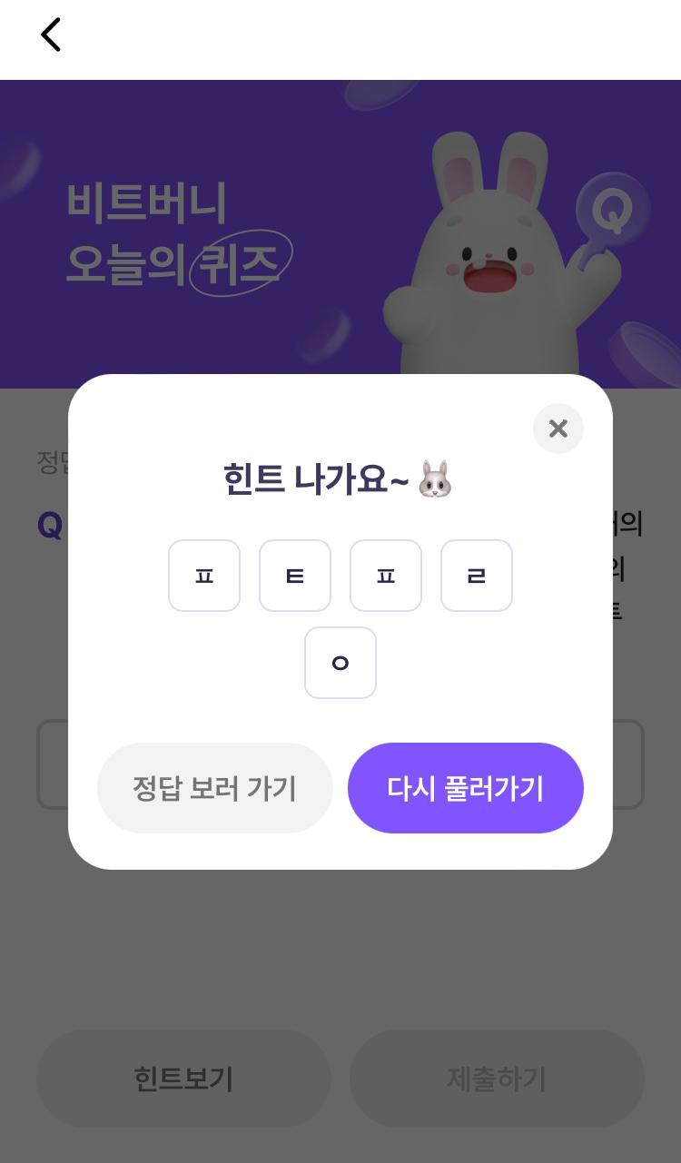 * 비트버니 퀴즈는 오늘의 퀴즈와 코인이 쌓이는 퀴즈가 있어요!!