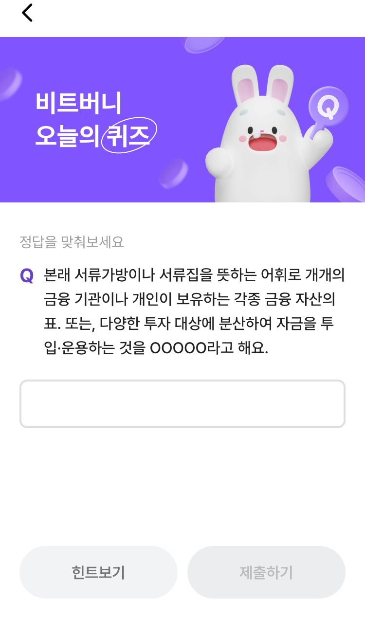 * 비트버니 퀴즈는 오늘의 퀴즈와 코인이 쌓이는 퀴즈가 있어요!!