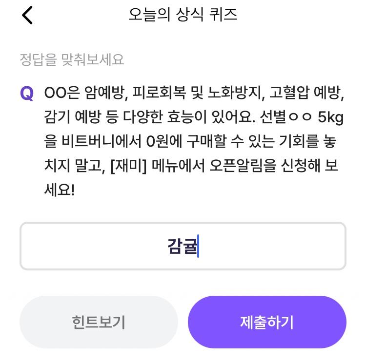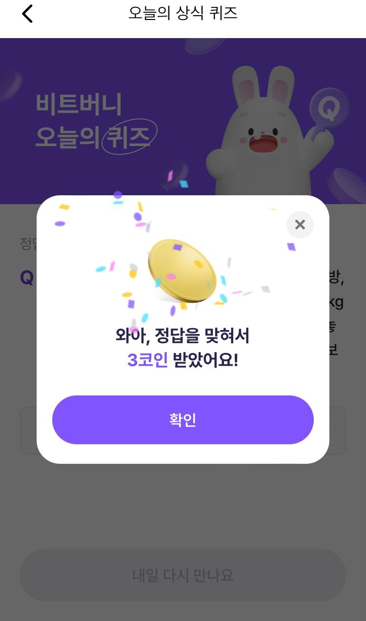 * 비트버니 퀴즈는 오늘의 퀴즈와 코인이 쌓이는 퀴즈가 있어요!!