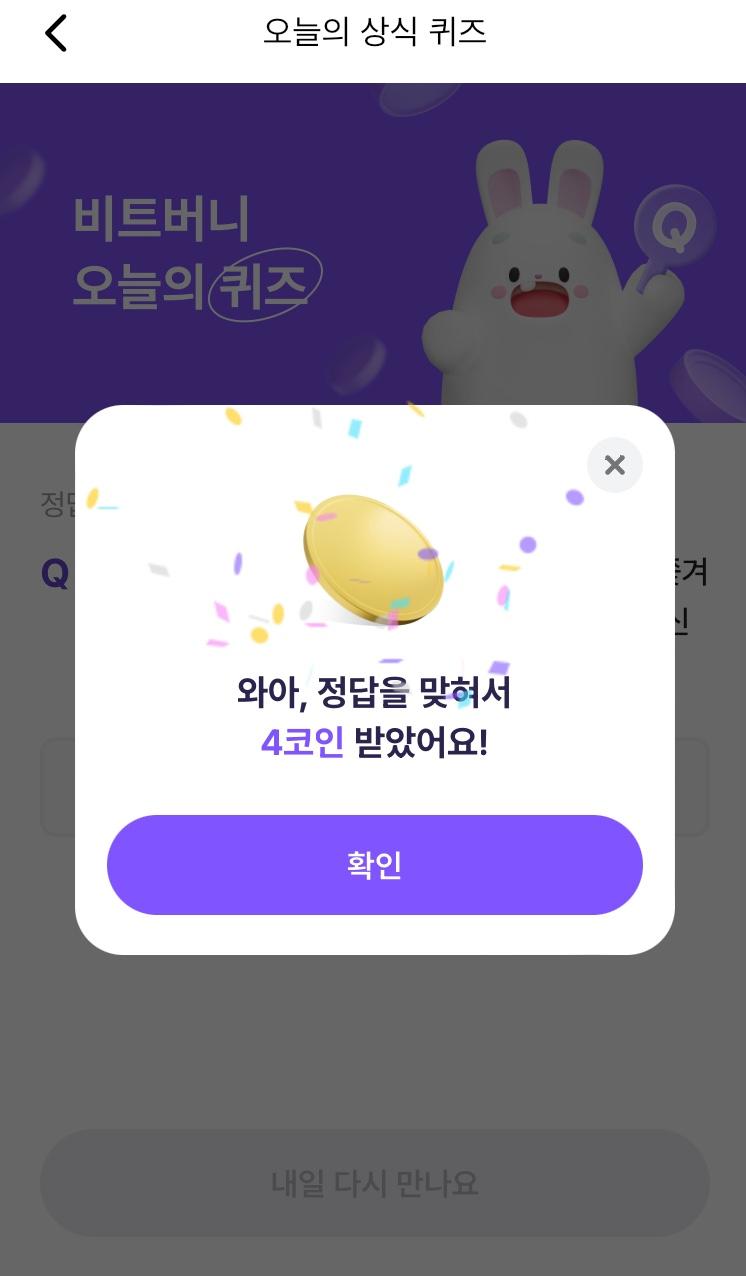 * 비트버니 퀴즈는 오늘의 퀴즈와 코인이 쌓이는 퀴즈가 있어요!!