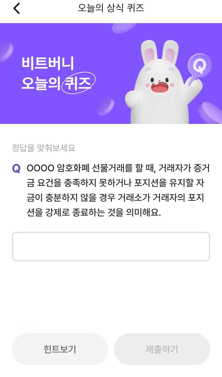 * 비트버니 퀴즈는 오늘의 퀴즈와 코인이 쌓이는 퀴즈가 있어요!!