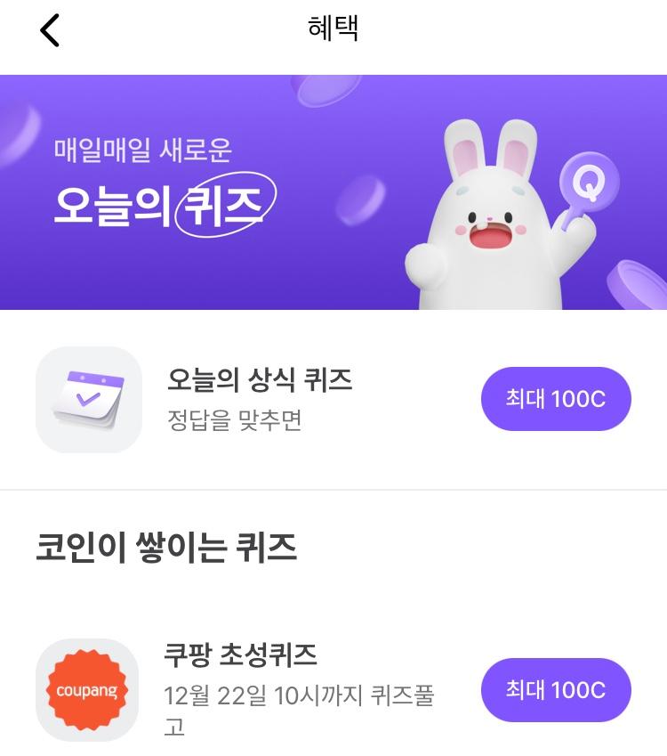 코인이 쌓이는 퀴즈도 풀어봐요~