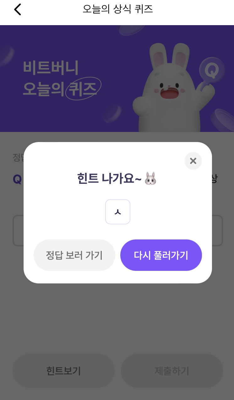 * 비트버니 퀴즈는 오늘의 퀴즈와 코인이 쌓이는 퀴즈가 있어요!!