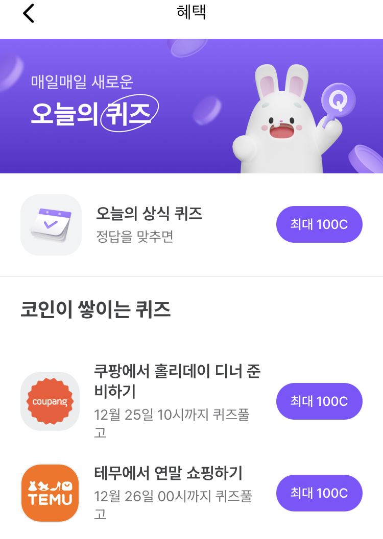 / 코인이 쌓이는 퀴즈도 풀어봐요~