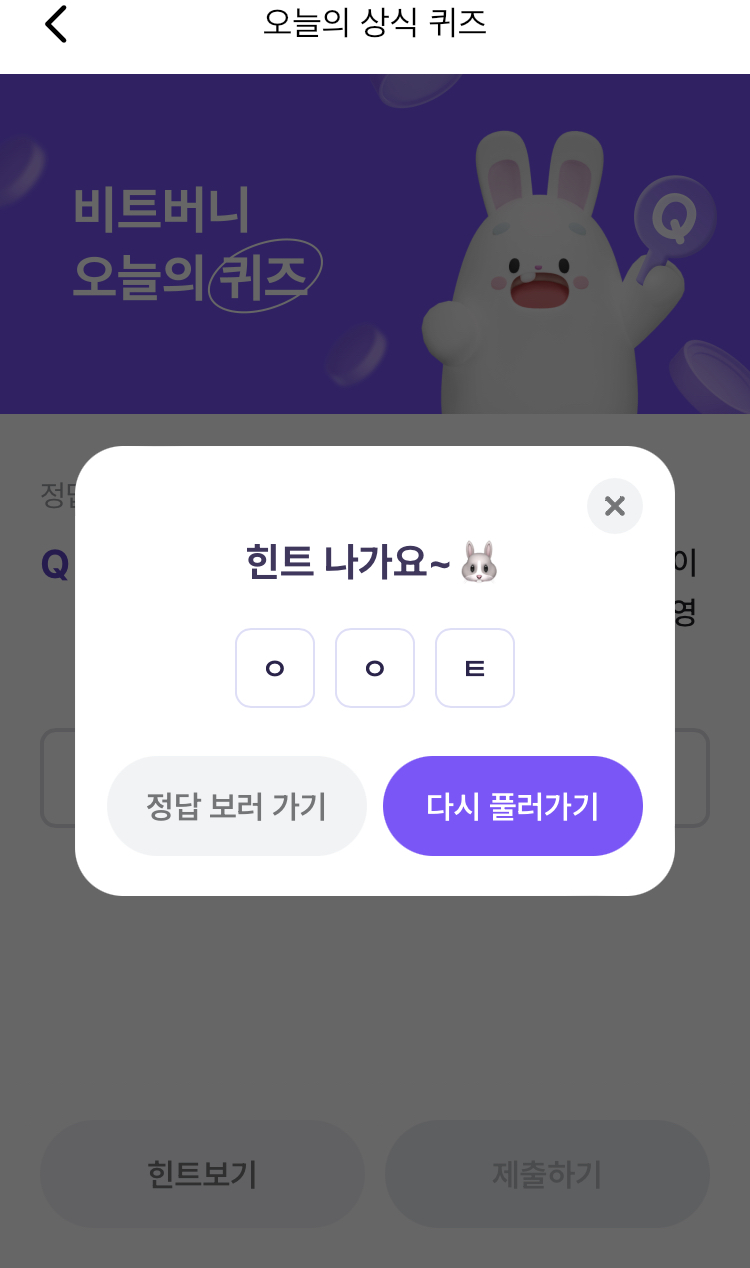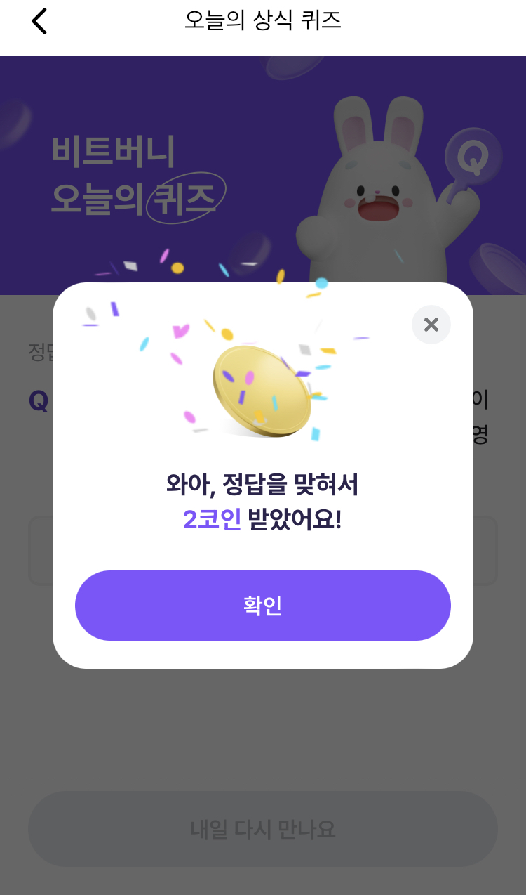 * 비트버니 퀴즈는 오늘의 퀴즈코인이 쌓이는 퀴즈가 있어요!!