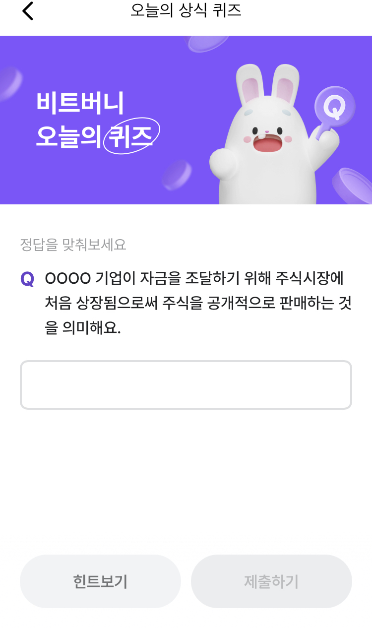 * 비트버니 퀴즈는 오늘의 퀴즈코인이 쌓이는 퀴즈가 있어요!!