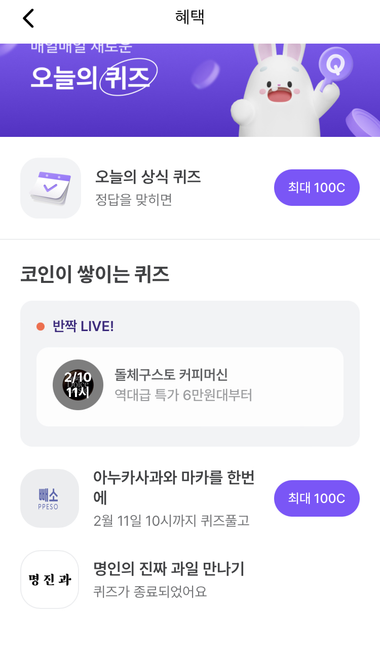 / 코인이 쌓이는 퀴즈도 풀어봐요~