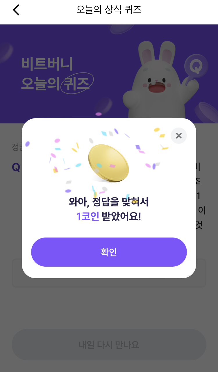* 비트버니 퀴즈는 오늘의 퀴즈와 코인이 쌓이는 퀴즈가 있어요!!