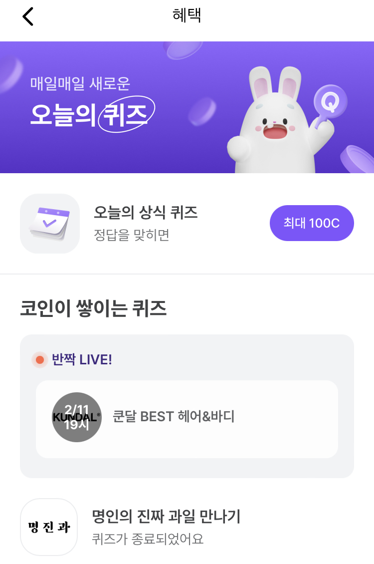 / 코인이 쌓이는 퀴즈도 풀어봐요~