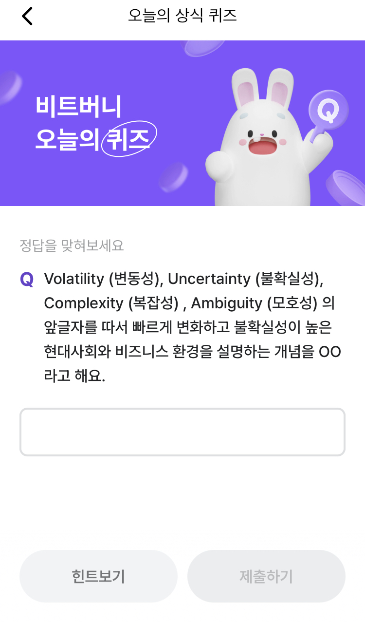 * 비트버니 퀴즈는 오늘의 퀴즈와 코인이 쌓이는 퀴즈가 있어요!!