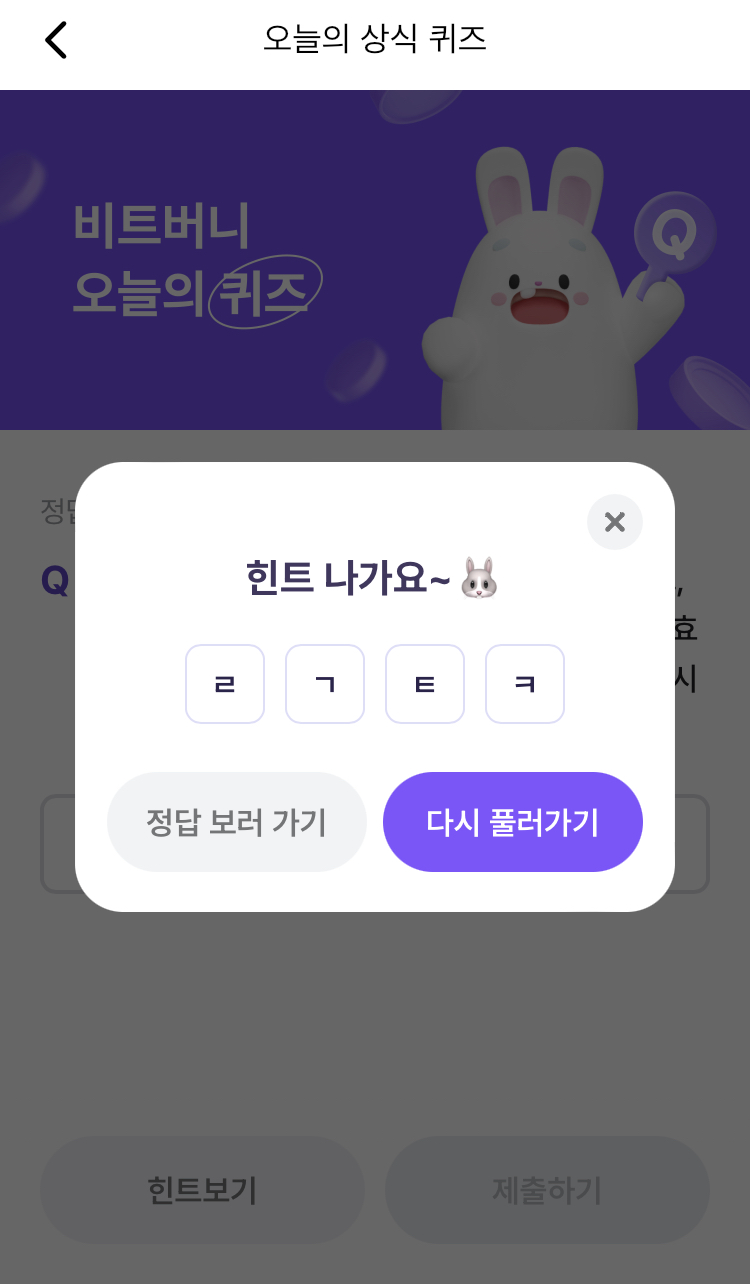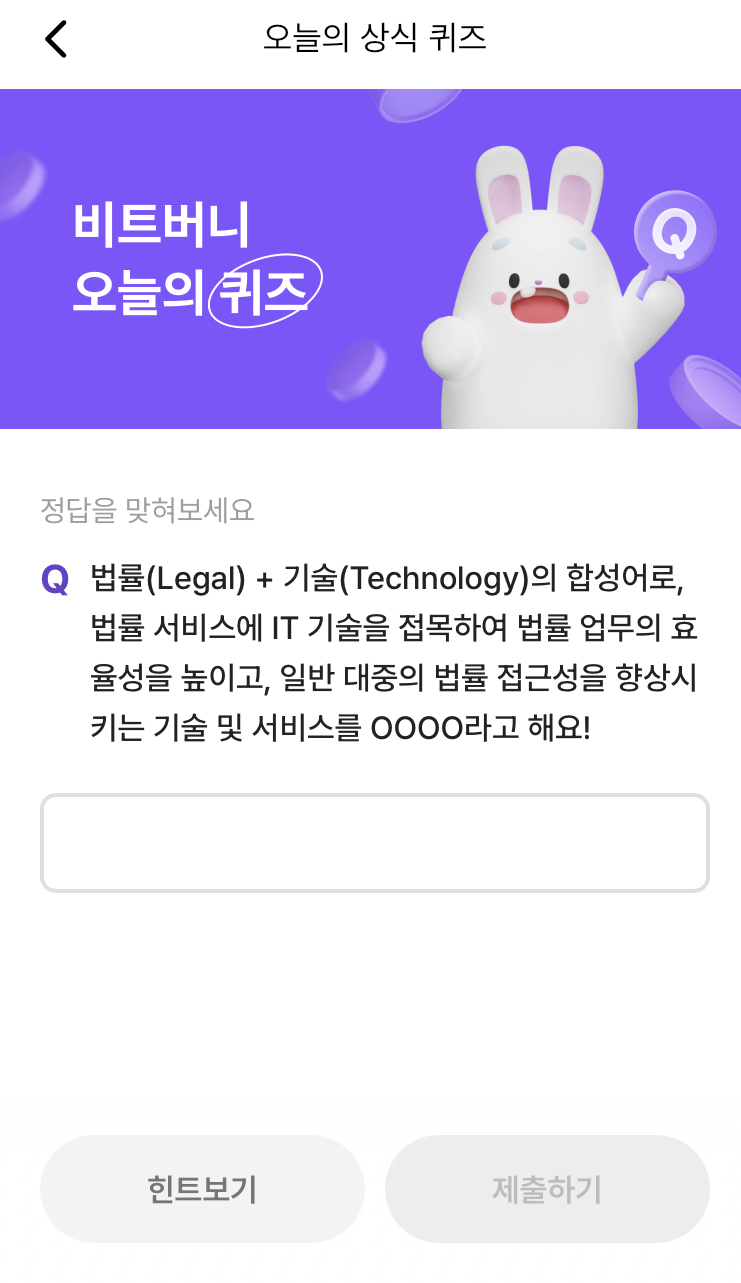 * 비트버니 퀴즈는 오늘의 퀴즈와 코인이 쌓이는 퀴즈가 있어요!!