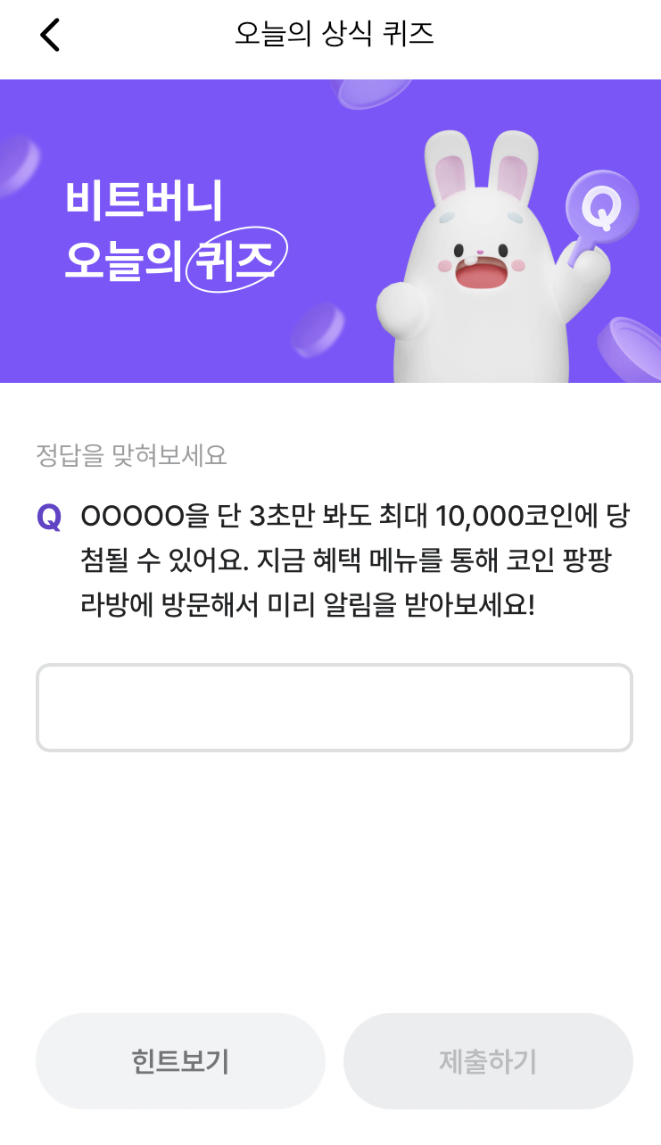 * 비트버니 퀴즈는 오늘의 퀴즈와 코인이 쌓이는 퀴즈가 있어요!!