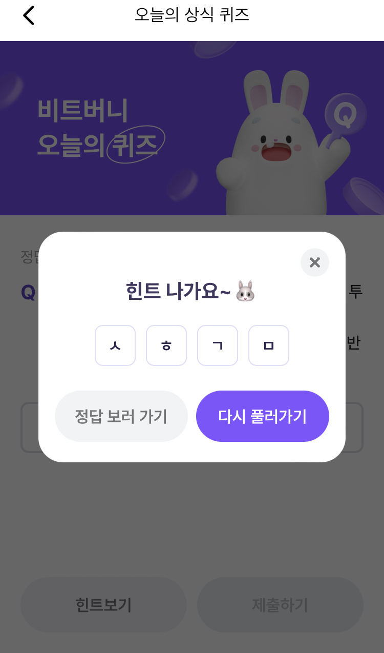 * 비트버니 퀴즈는 오늘의 퀴즈와 코인이 쌓이는 퀴즈가 있어요!!