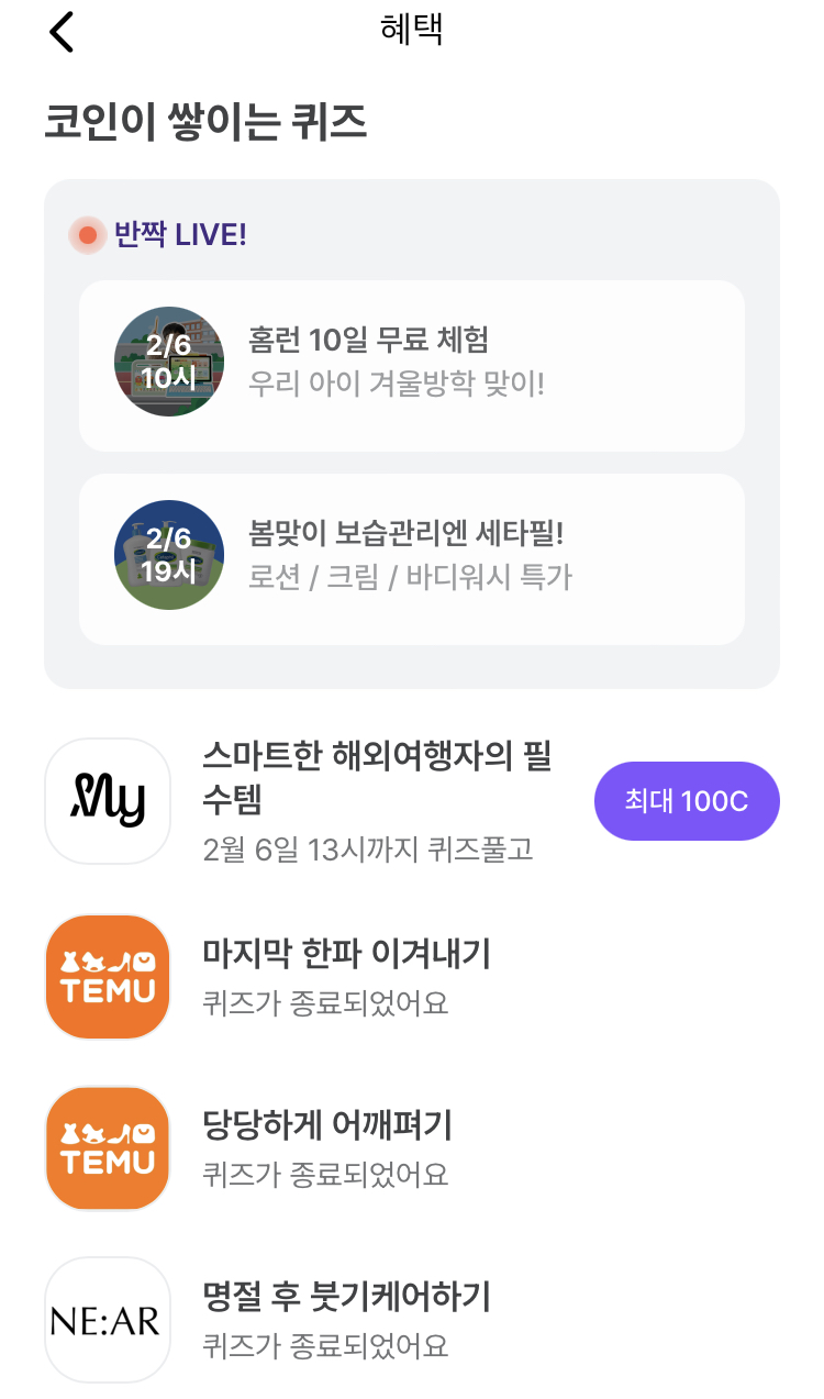 / 코인이 쌓이는 퀴즈도 풀어봐요~