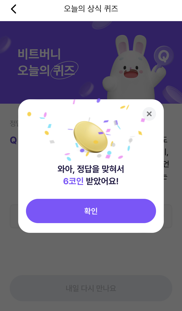 * 비트버니 퀴즈는 오늘의 퀴즈와 코인이 쌓이는 퀴즈가 있어요!!