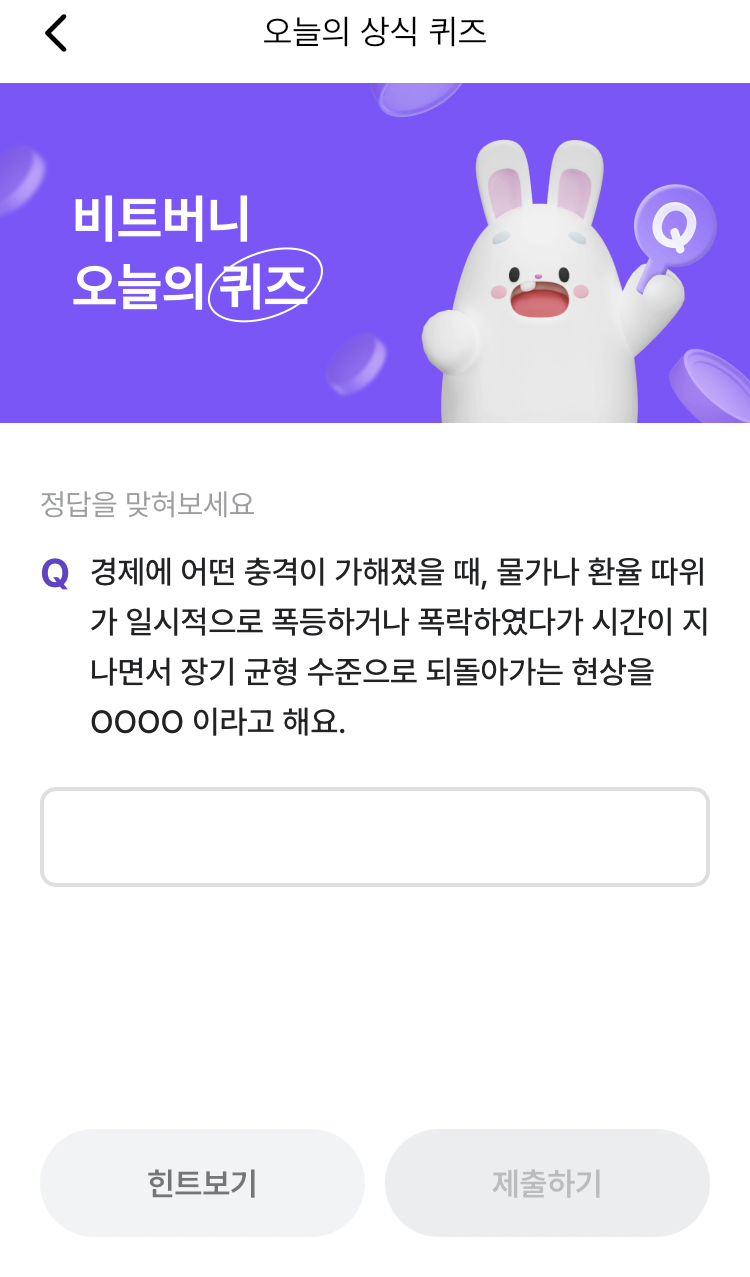 * 비트버니 퀴즈는 오늘의 퀴즈와 코인이 쌓이는 퀴즈가 있어요!!