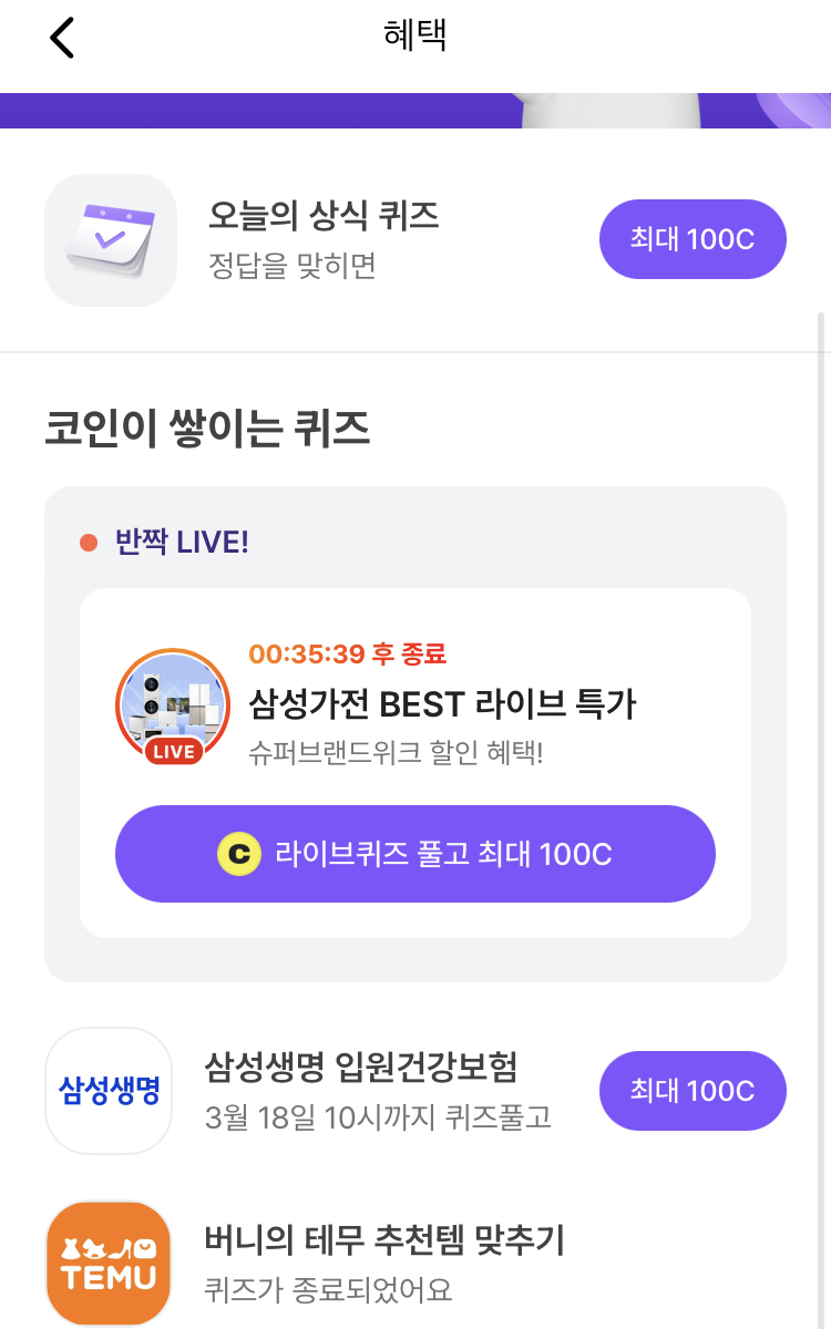 / 코인이 쌓이는 퀴즈도 풀어봐요~