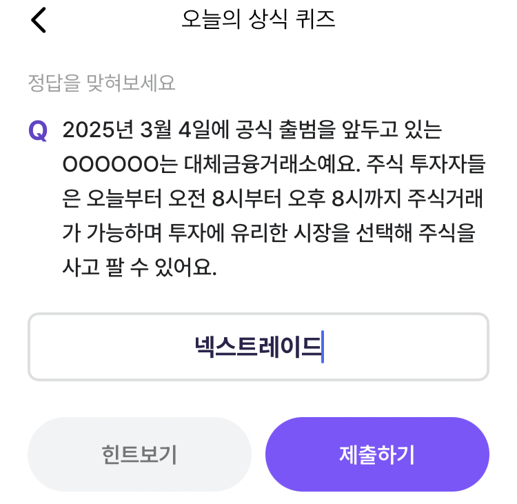 | 비트버니 2월 26일 오늘의 퀴즈 정답 ㅎㅅㄷㄱㅈ은?(ft. 코인이 쌓이는 퀴즈,삼성생명다이렉트) (0) | 2025.02.26 |