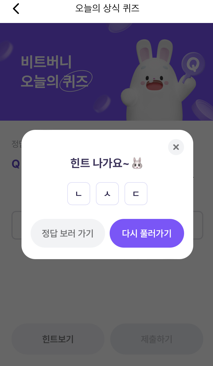 * 비트버니 퀴즈는 오늘의 퀴즈와 코인이 쌓이는 퀴즈가 있어요!!
