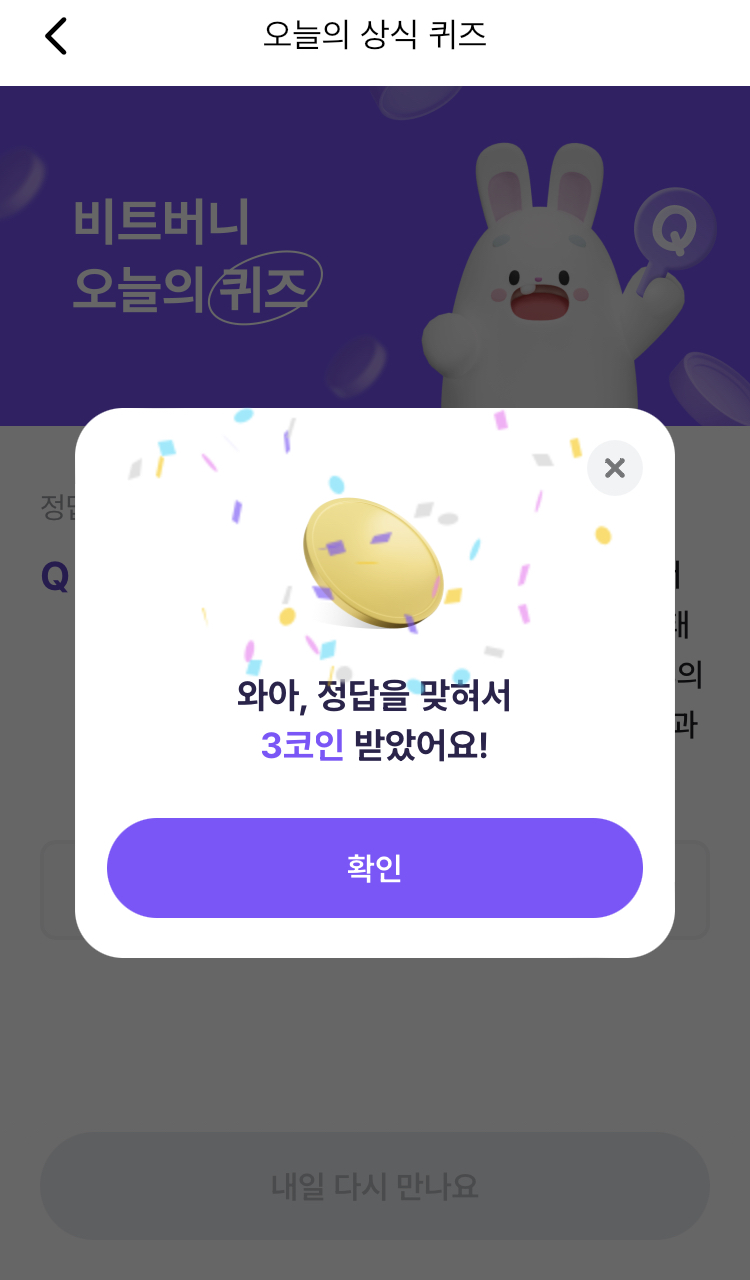 * 비트버니 퀴즈는 오늘의 퀴즈코인이 쌓이는 퀴즈가 있어요!!