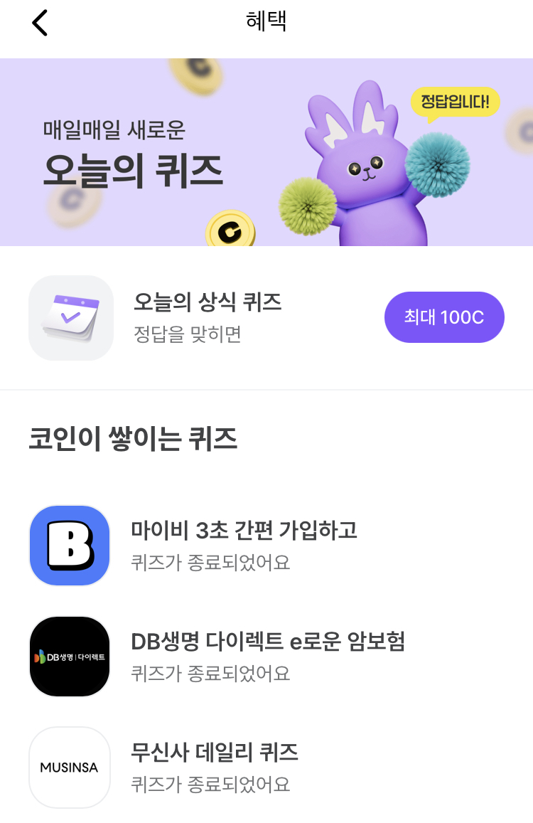 / 코인이 쌓이는 퀴즈도 풀어봐요~