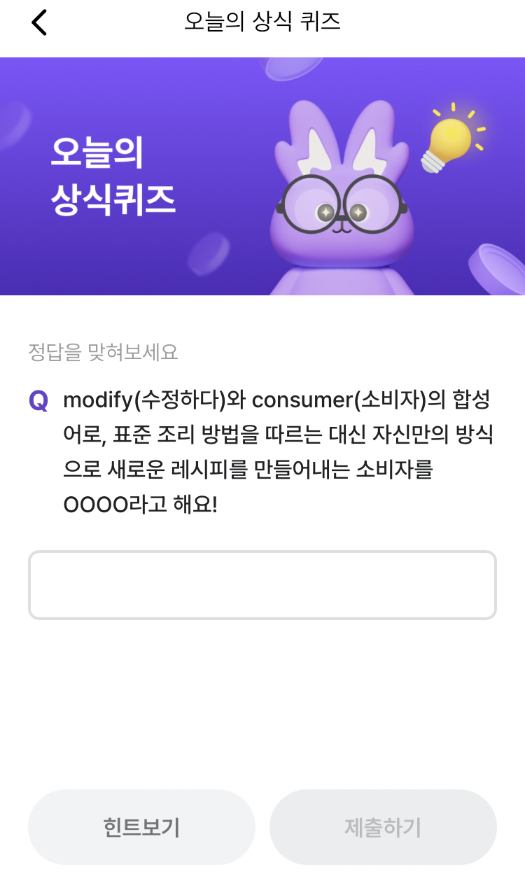 * 비트버니 퀴즈는 오늘의 퀴즈와 코인이 쌓이는 퀴즈가 있어요!!