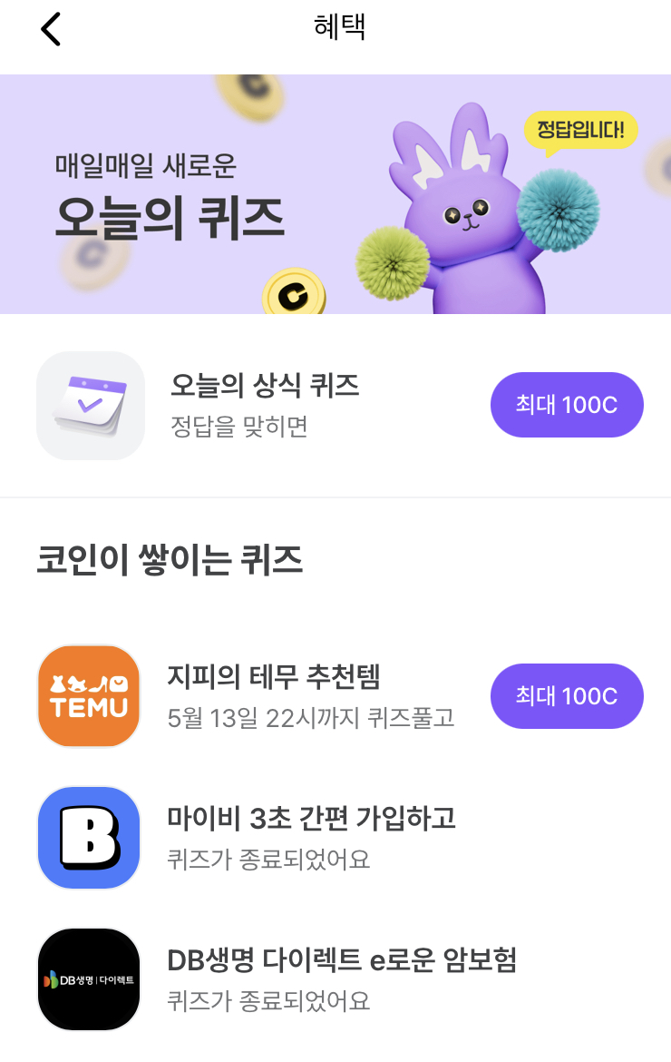 / 코인이 쌓이는 퀴즈도 풀어봐요~