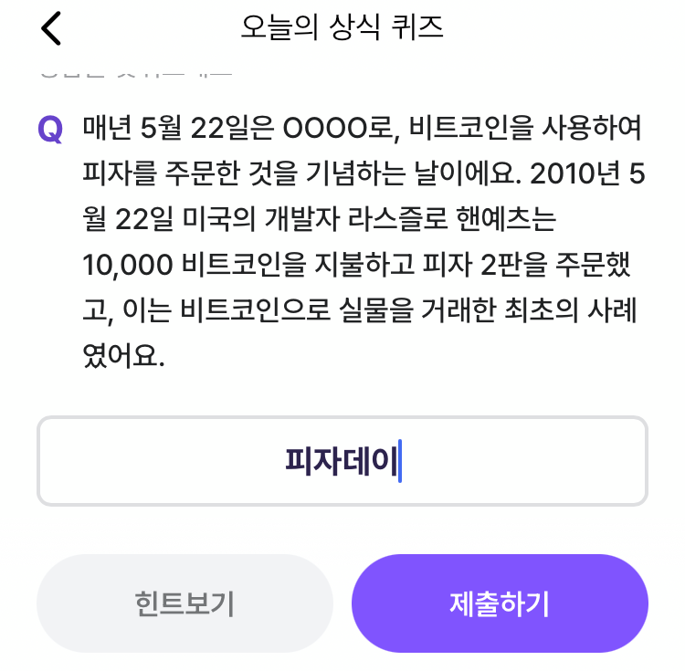 비트버니 5월 22일 오늘의 퀴즈 정답은?