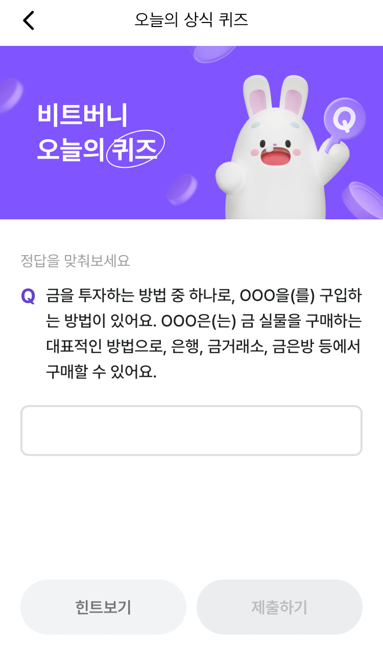 * 비트버니 퀴즈는 오늘의 퀴즈와 코인이 쌓이는 퀴즈가 있어요!!
