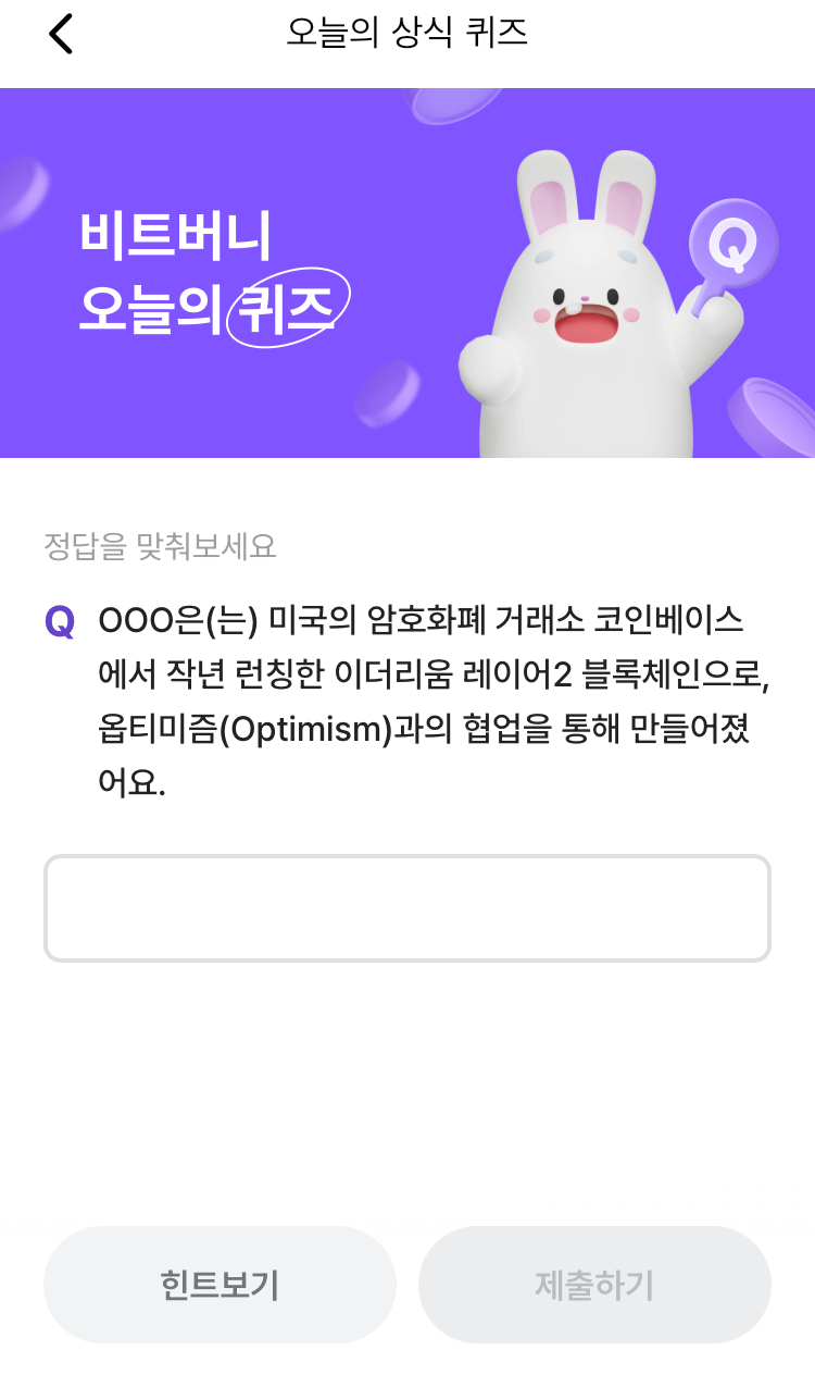 * 비트버니 퀴즈는 오늘의 퀴즈와 코인이 쌓이는 퀴즈가 있어요!!