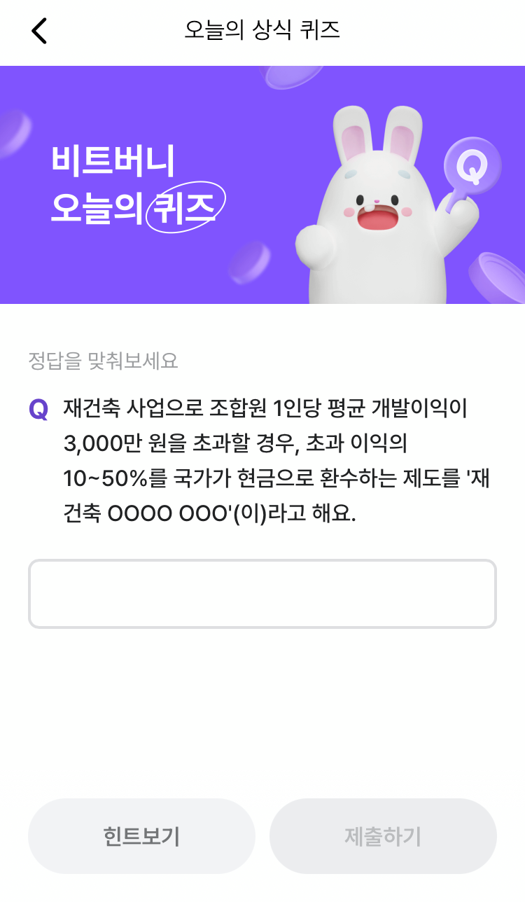 * 비트버니 퀴즈는 오늘의 퀴즈와 코인이 쌓이는 퀴즈가 있어요!!
