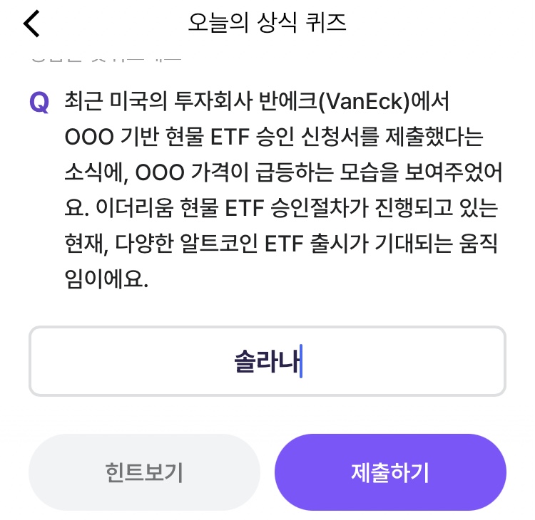비트버니 6월 29일 오늘의 퀴즈 정답은?