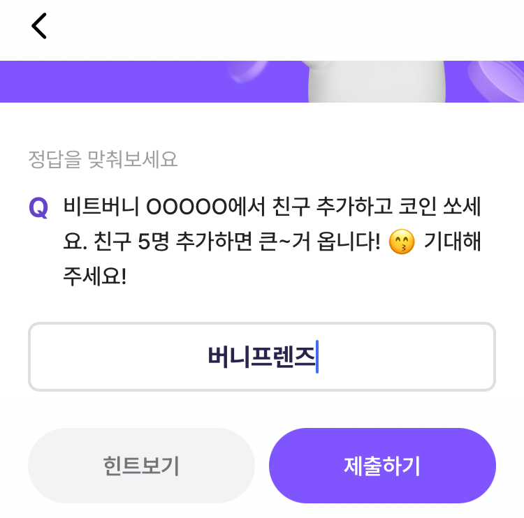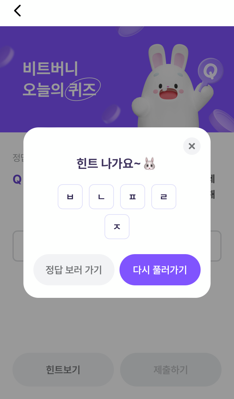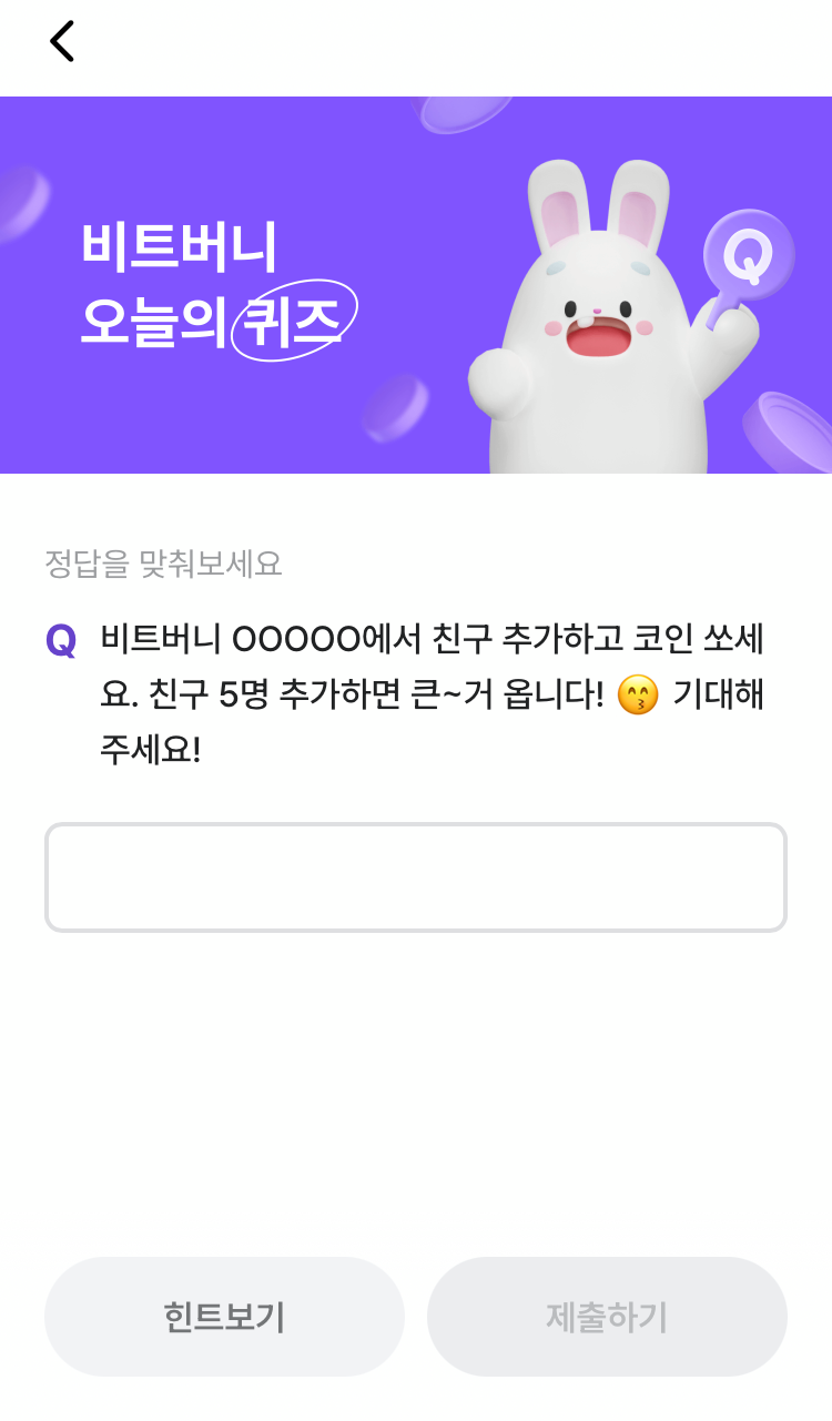 * 비트버니 퀴즈는 오늘의 퀴즈와 코인이 쌓이는 퀴즈가 있어요!!